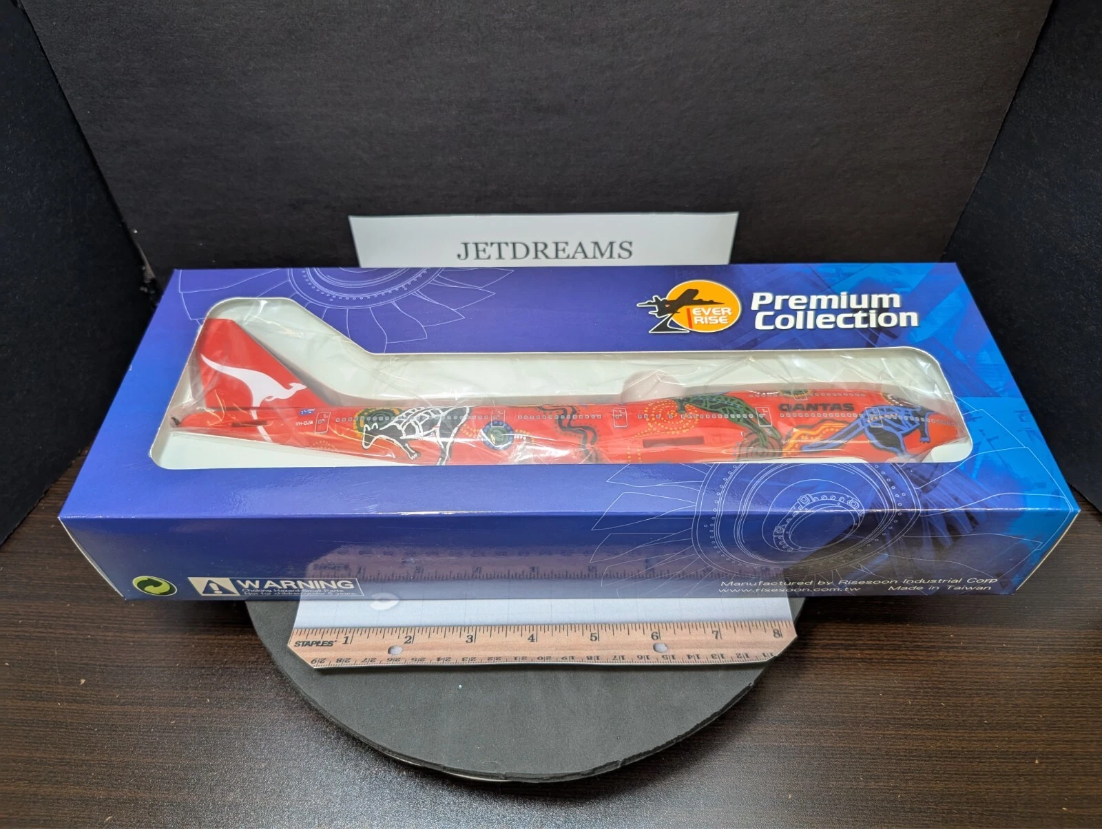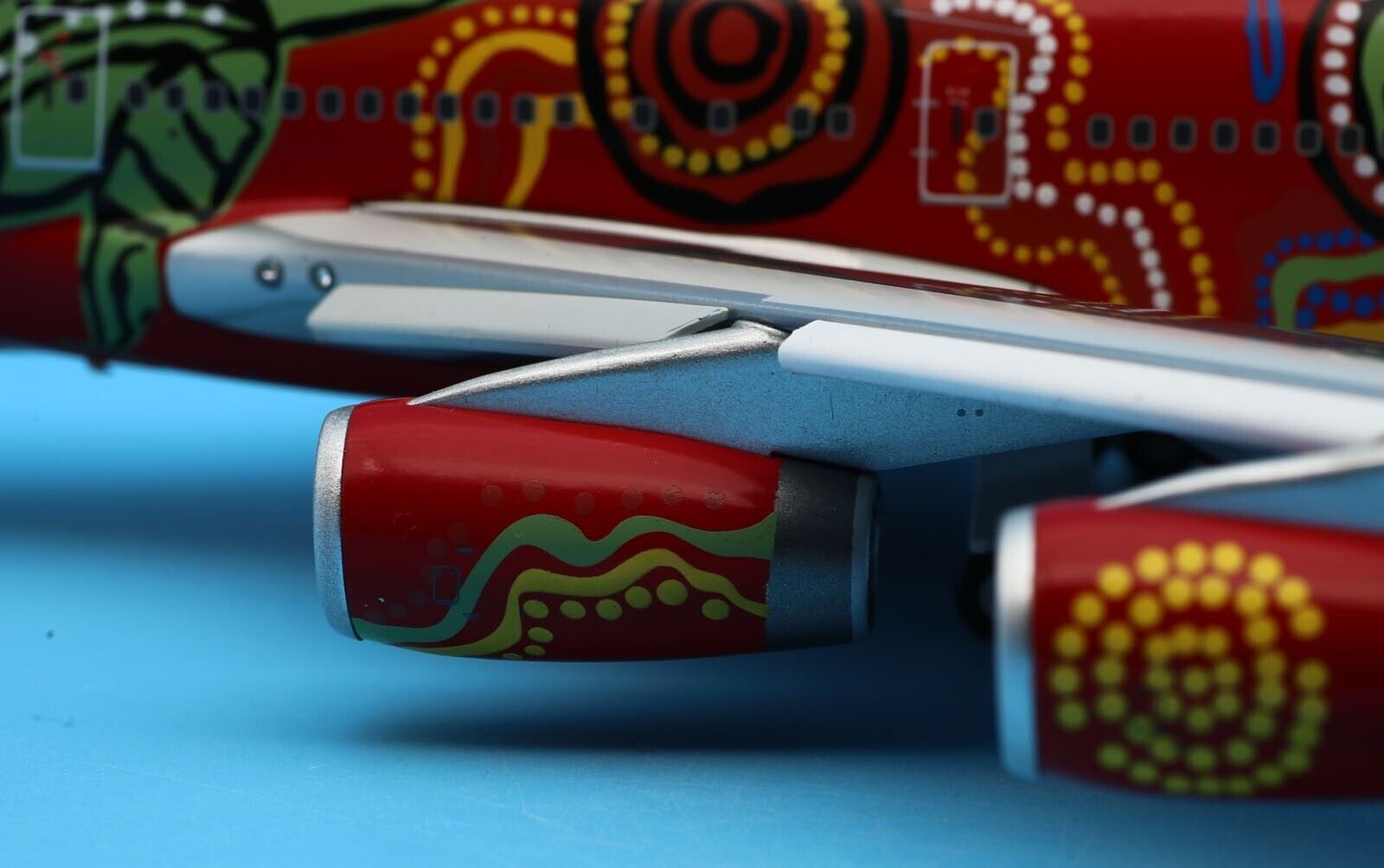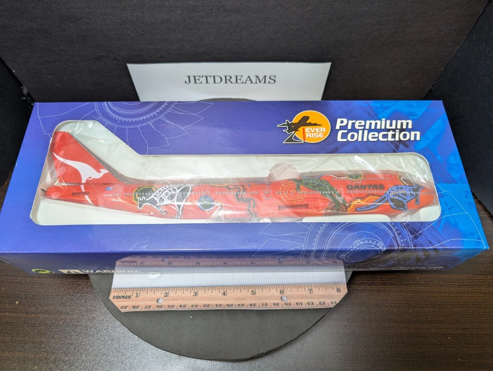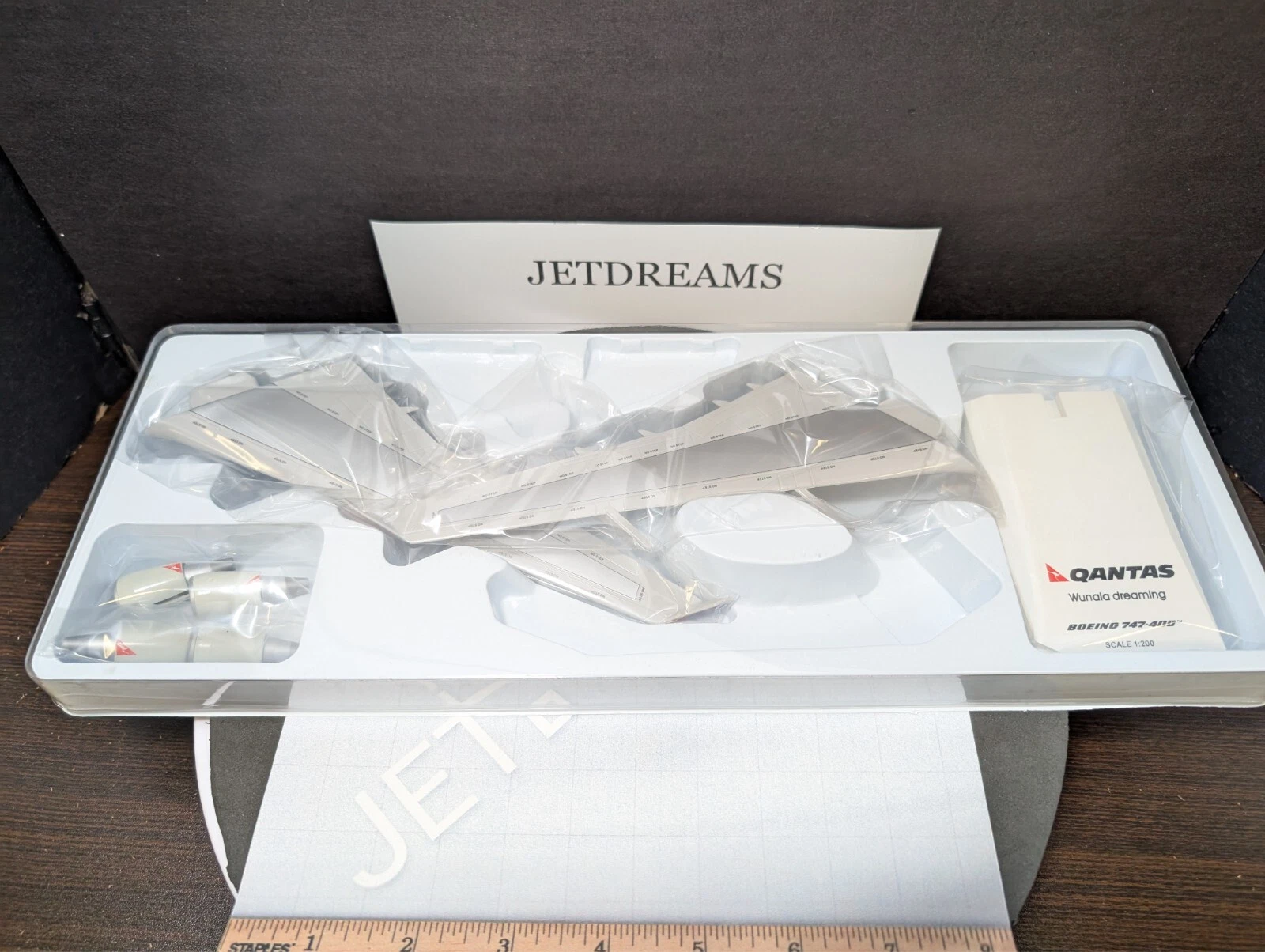 The 1:200 JC Wings Qantas Boeing 747-400 “Wunala Dreaming” (Registration: VH-OJB) is a highly detailed die-cast metal model representing the original “Flying Art” series aircraft.