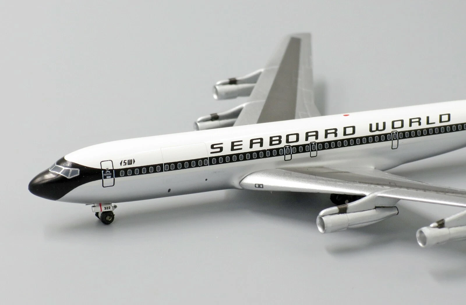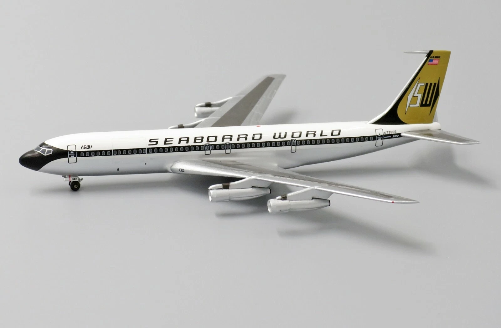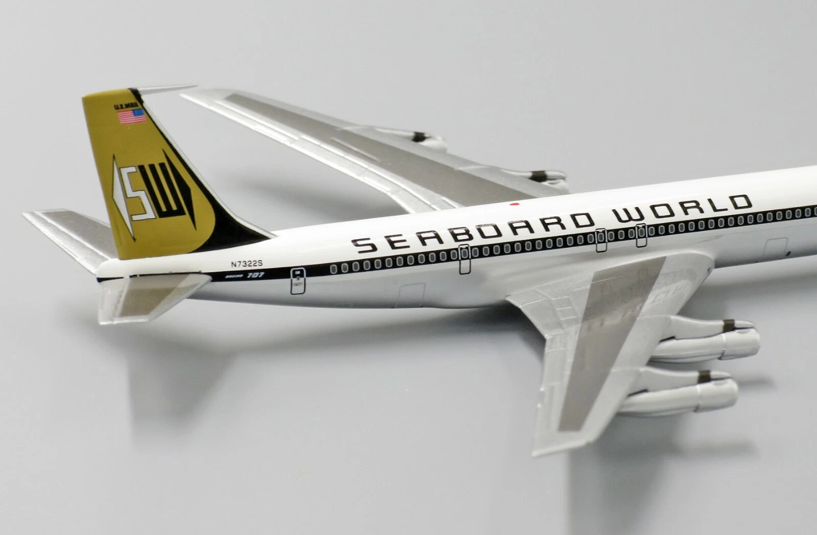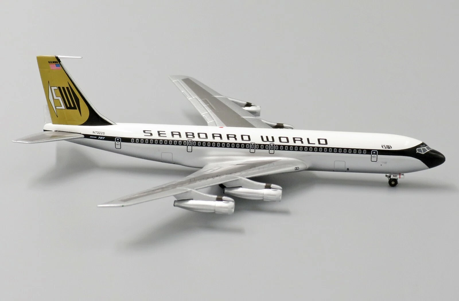 The Aviation 200 Seaboard World Boeing 707-300 (Registration N7322S) is a 1:200 scale diecast model representing a significant aircraft in air cargo history.