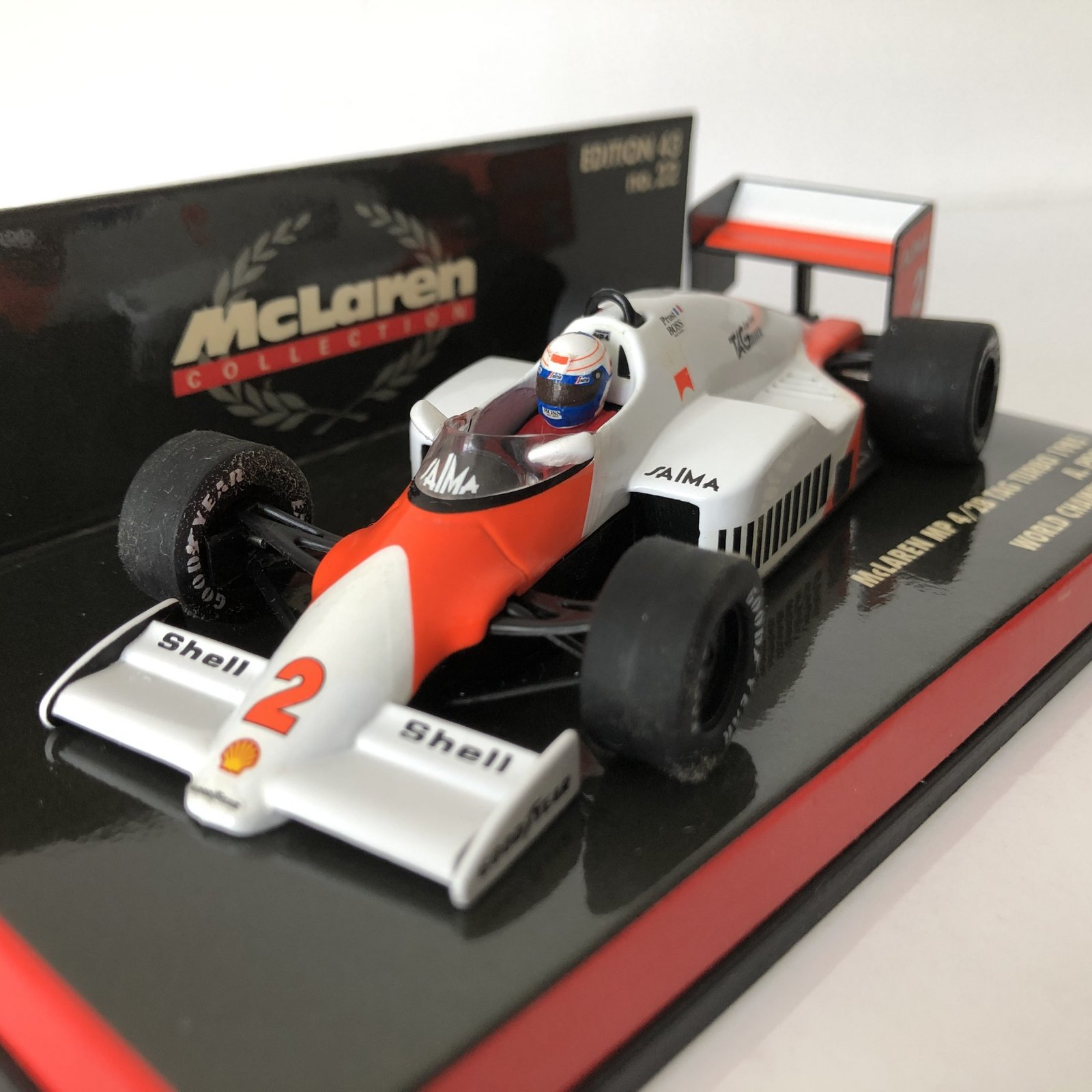 The Minichamps 1:43 scale model of Alain Prost’s 1985 McLaren MP4/2B, product number 530854802, is a sought-after collectible, typically available from specialist retailers and online marketplaces. Prices vary depending on condition and seller.