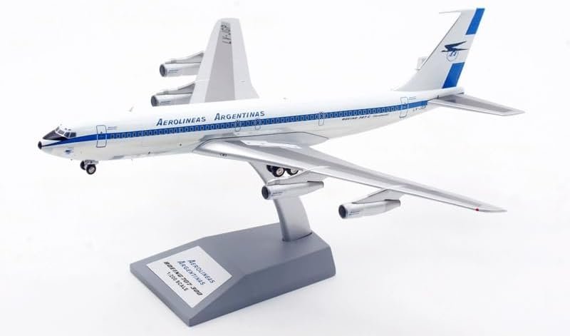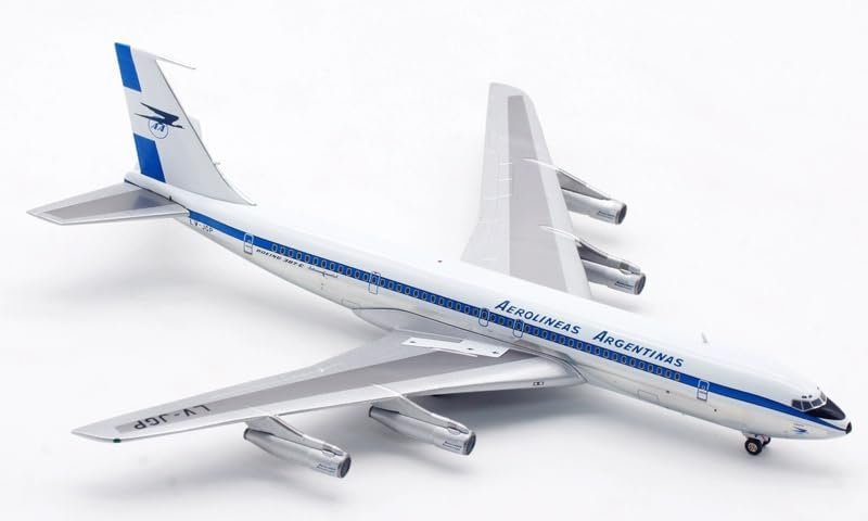 The Retro Models 1:200 Aerolíneas Argentinas Boeing 707-387C (LV-JGP) is a highly detailed diecast model using the Inflight 200 mould. It depicts the aircraft in its classic 1960s/1970s delivery “Blue/White” livery.