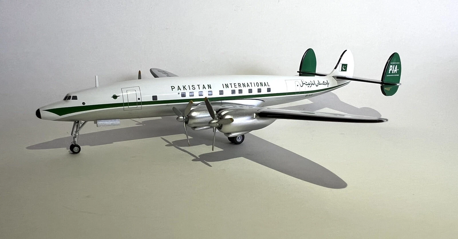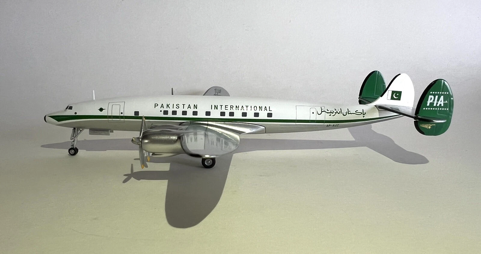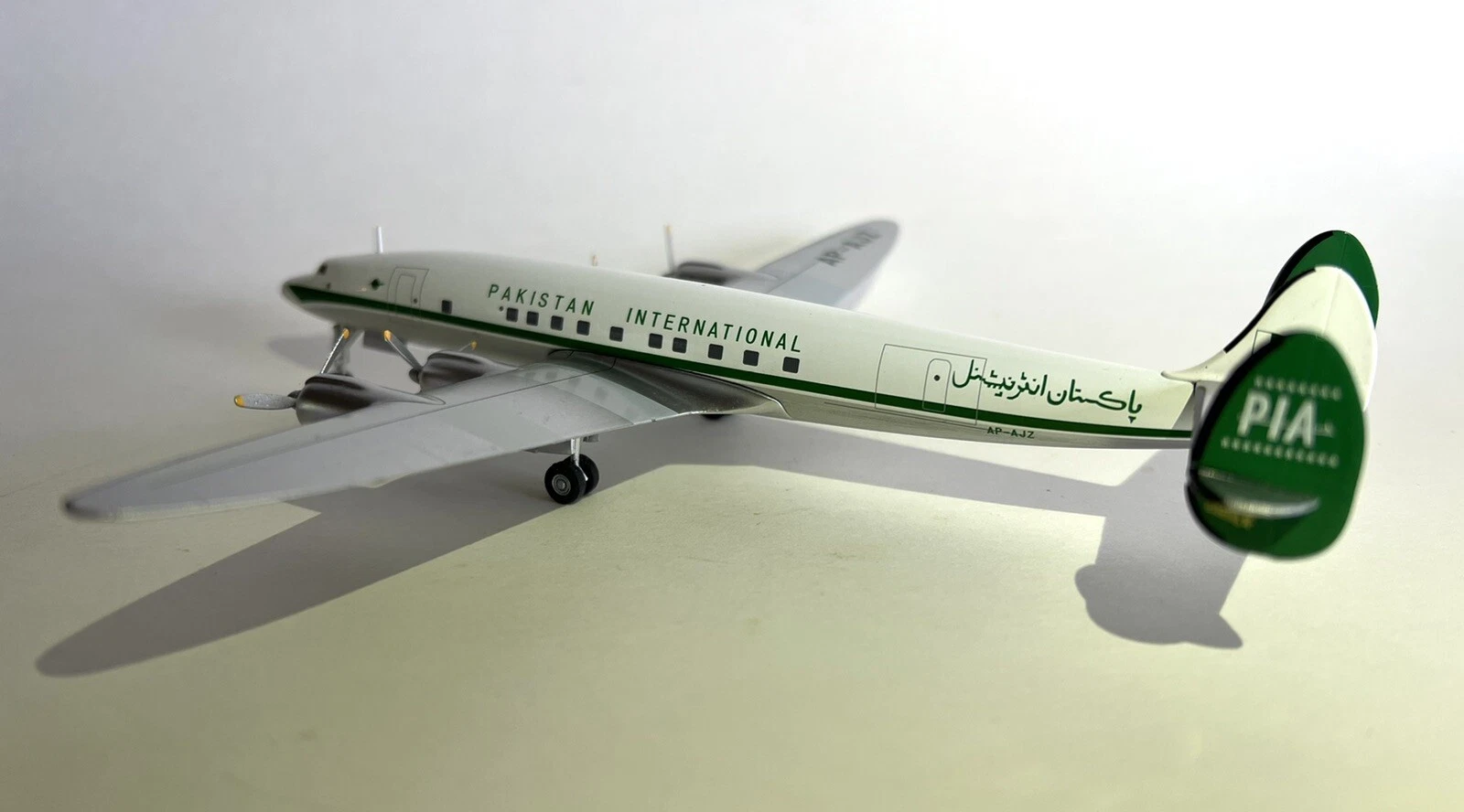 The AeroClassics 1:200 Pakistan International Airlines (PIA) Lockheed L-1049 Super Constellation (AP-AJZ) is a highly detailed diecast metal collector’s model.