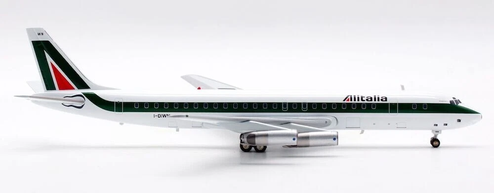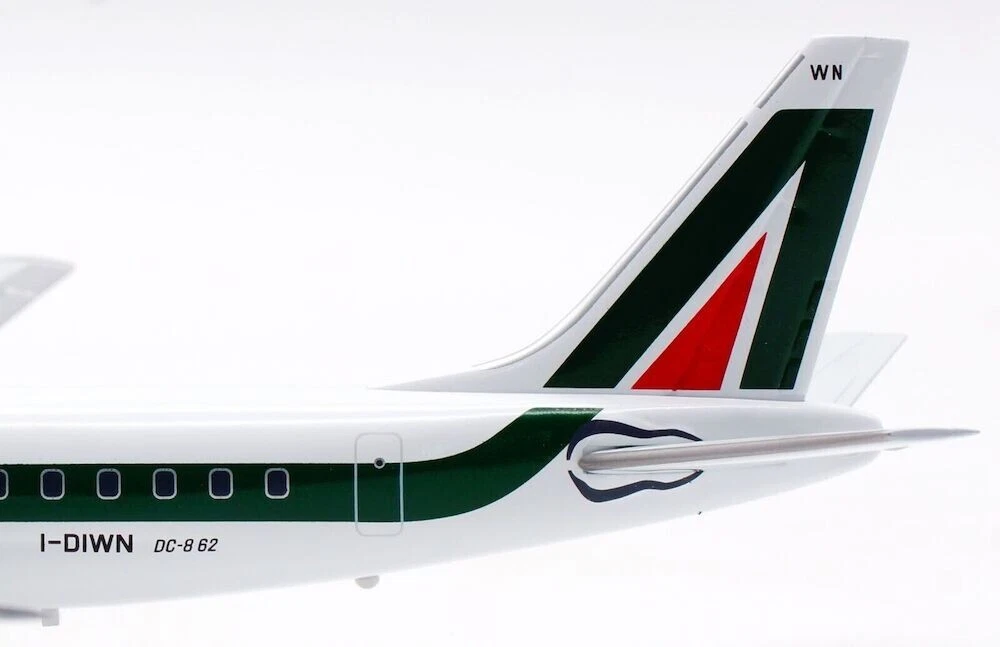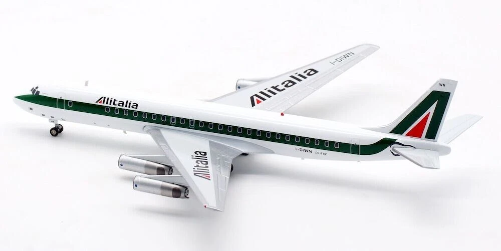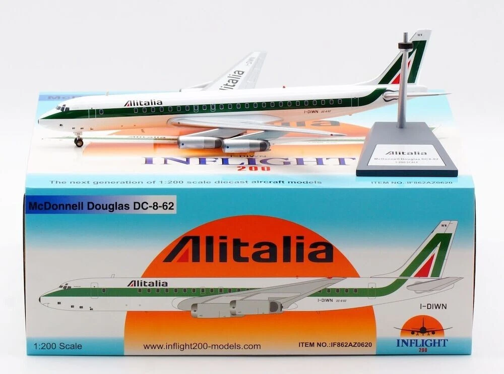 The Inflight 200 Alitalia Douglas DC-8-62 (Registration I-DIWN) is a highly detailed 1:200 scale diecast metal model. This specific model represents the aircraft in its 1980s livery and is often named “Giuseppe Verdi”.