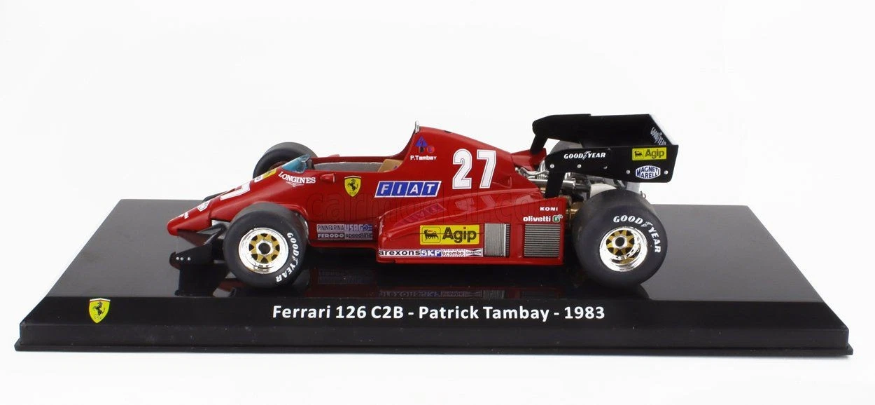 In 2026, several 1/43 scale diecast models of Patrick Tambay’s 1983 Ferrari 126C2B (car #27) are available from manufacturers like Altaya and IXO, as well as premium brands.