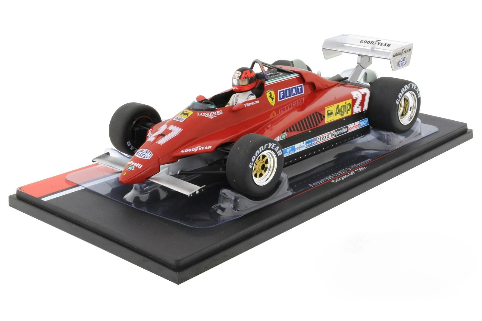This model commemorates Villeneuve’s final race, as he tragically died in a qualifying crash during the event on the Saturday. The model is generally well-regarded as a good representation of the original car, although some user reviews note minor flaws such as the “giraffe neck” driver figure or overly shiny chrome.