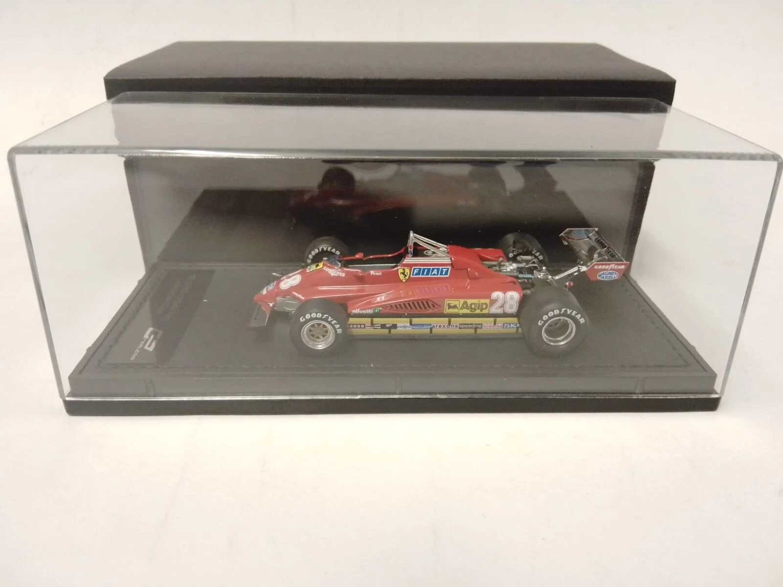 The text provided describes a specific limited edition model car: the Didier Pironi Ferrari 126C2, car number 28, which won the 1982 San Marino GP