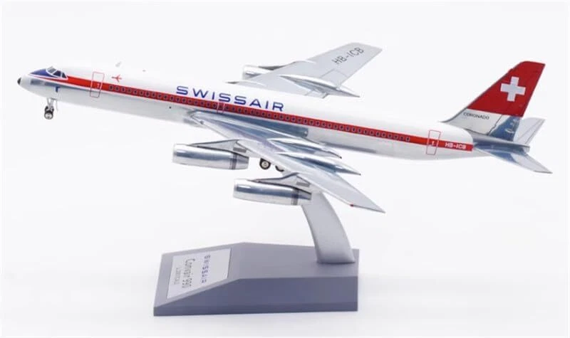The Inflight200 1:200 Swissair Convair CV-990A Coronado (HB-ICB) is a highly detailed, limited-edition die-cast metal model of the iconic high-speed jet airliner. This specific model, often released under the B-Models sub-brand (Product Code: B-990-SR-CB), replicates the aircraft nicknamed “Luzern” in its classic Swissair livery.