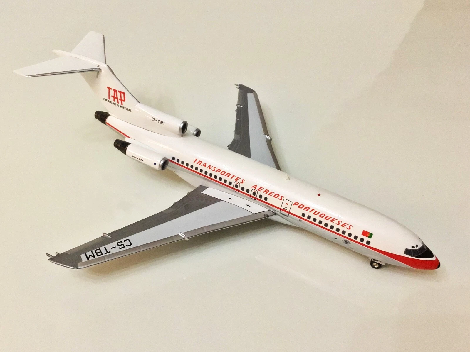 The Inflight 200 TAP Air Portugal Boeing 727-100 (Registration: CS-TBM) is a highly detailed 1:200 scale die-cast metal collector’s model representing the aircraft’s 1970s and 1980s livery.