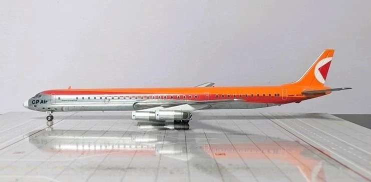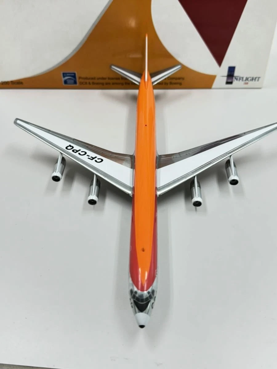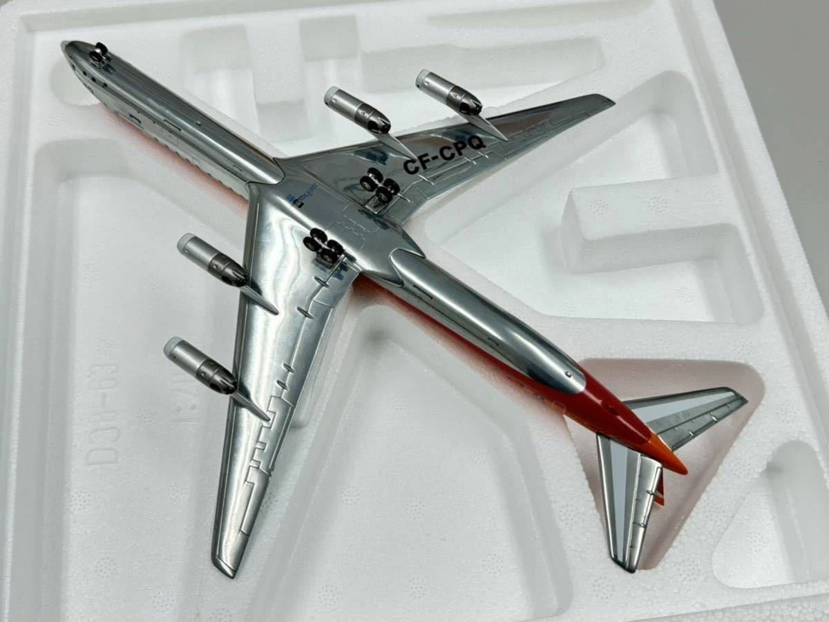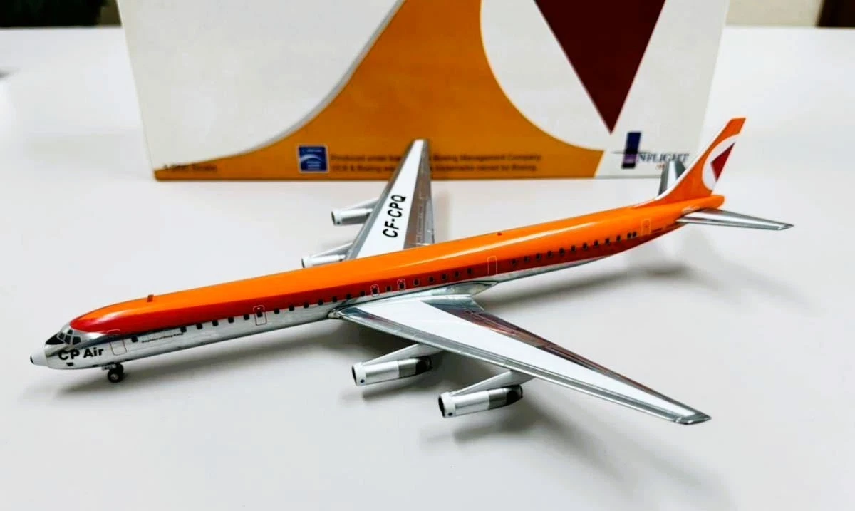 The Inflight 200 CP Air Douglas DC-8-63 (CF-CPQ) is a 1:200 scale diecast metal collector’s model representing a classic aircraft from the Canadian Pacific Air Lines fleet.