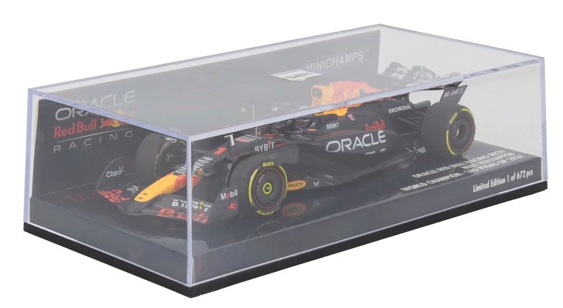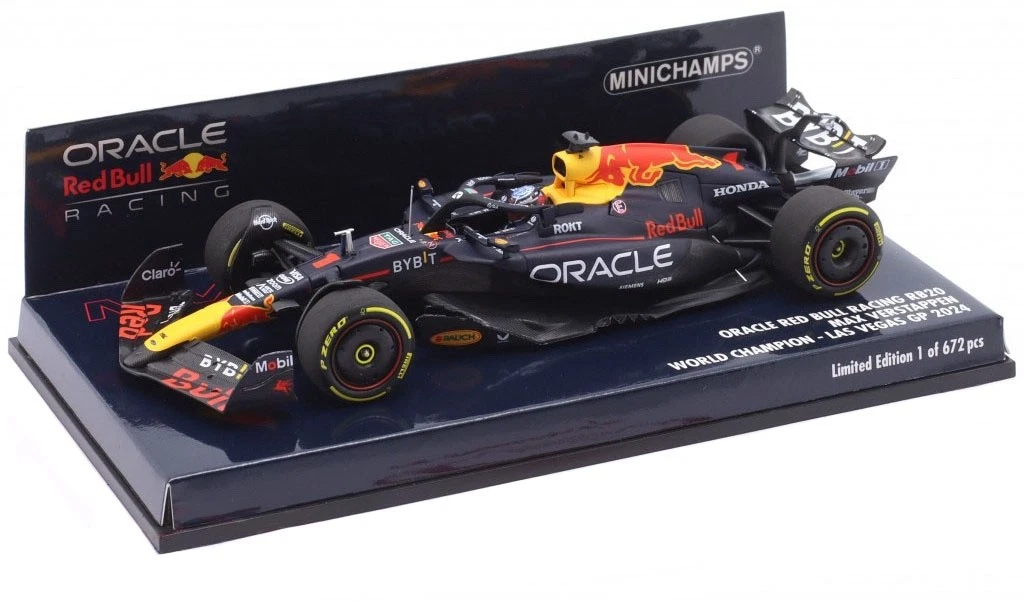 The Minichamps Max Verstappen Oracle Red Bull Racing – RB20 #1 2024 Las Vegas GP 1:43 scale model is a limited edition die-cast replica commemorating his fourth Formula 1 World Championship win. The model, with item number 410242201, is available for purchase from various online retailers.
