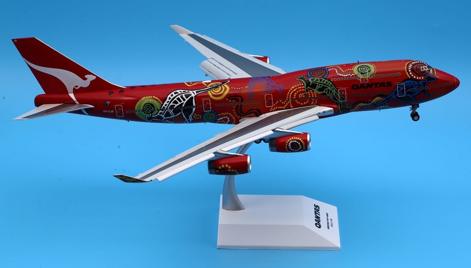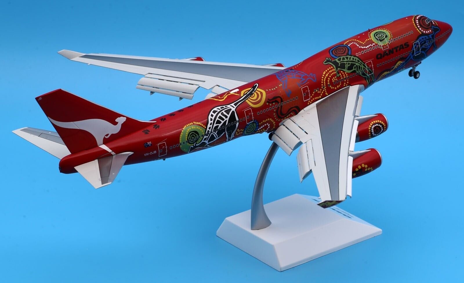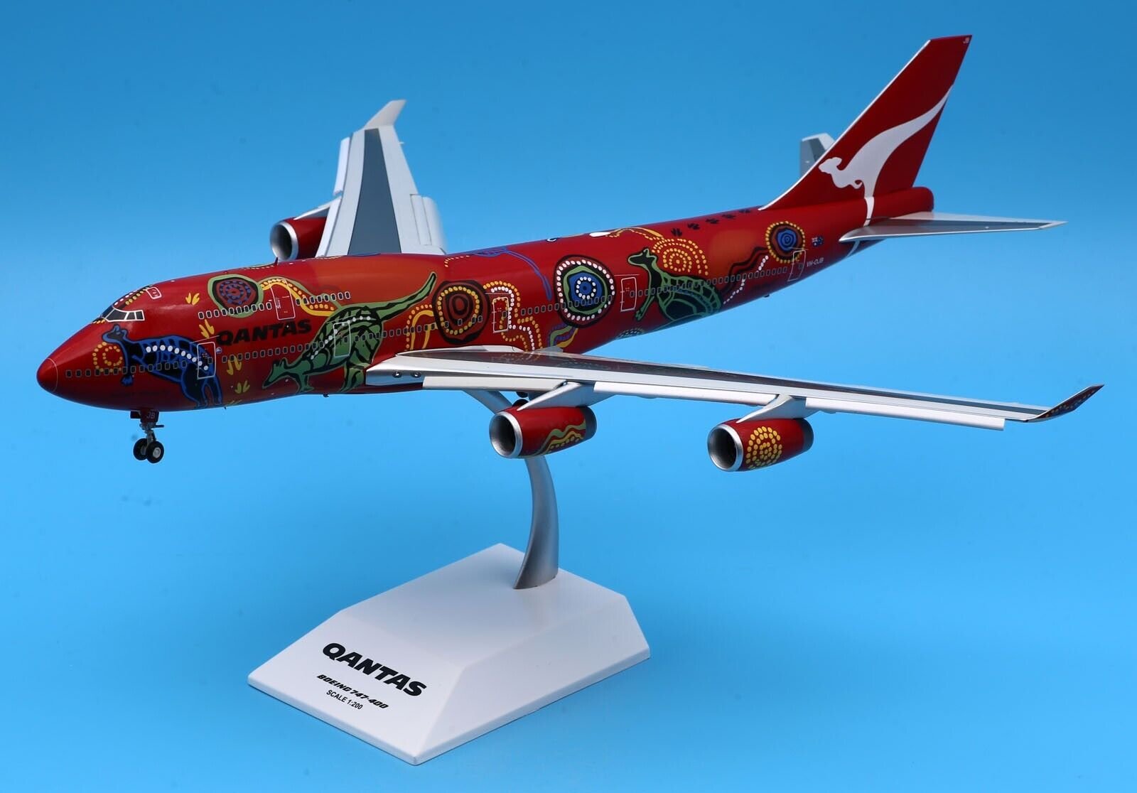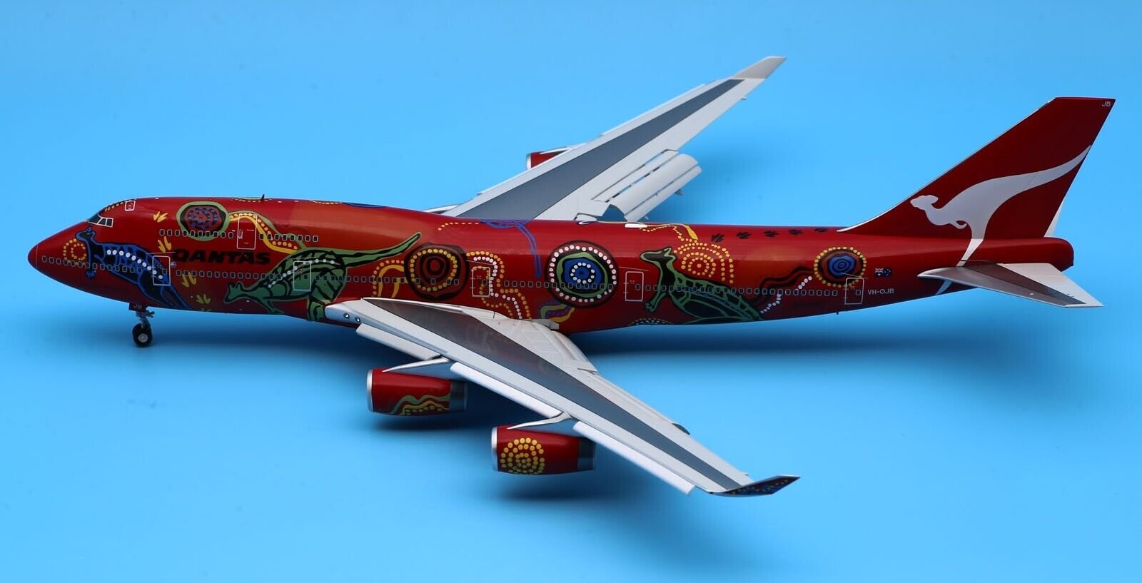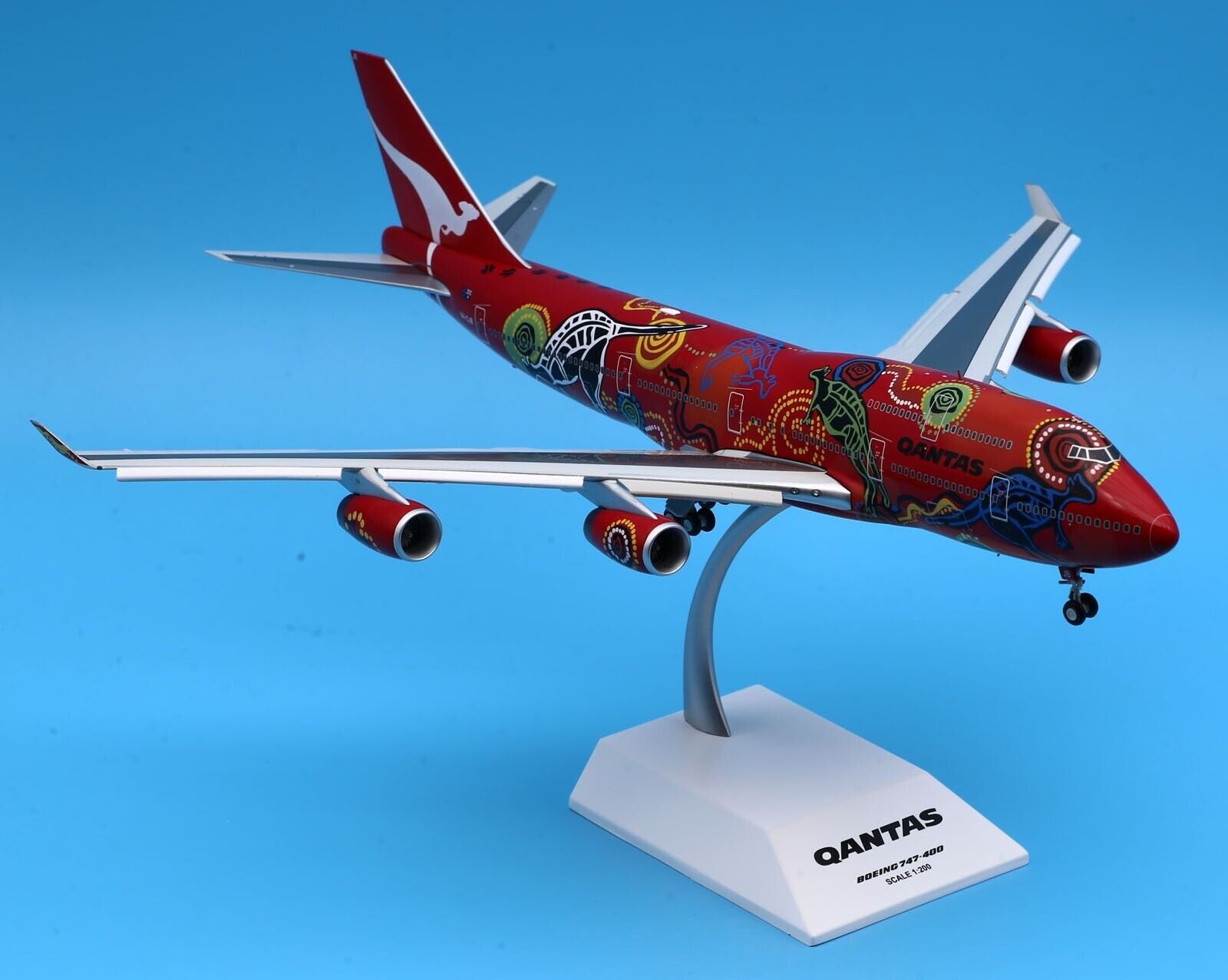 The 1:200 JC Wings Qantas Boeing 747-400 “Wunala Dreaming” (VH-OJB) is a highly detailed diecast model available in multiple configurations.