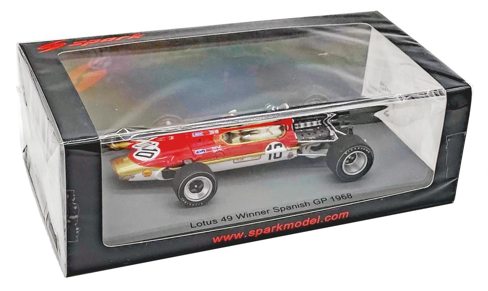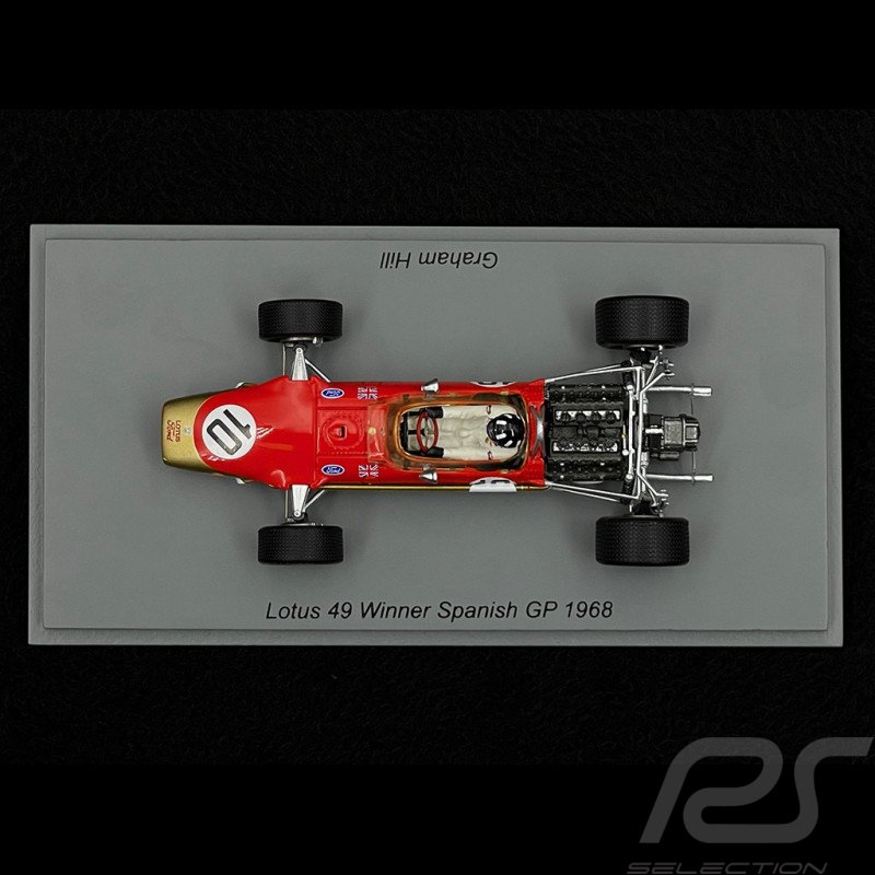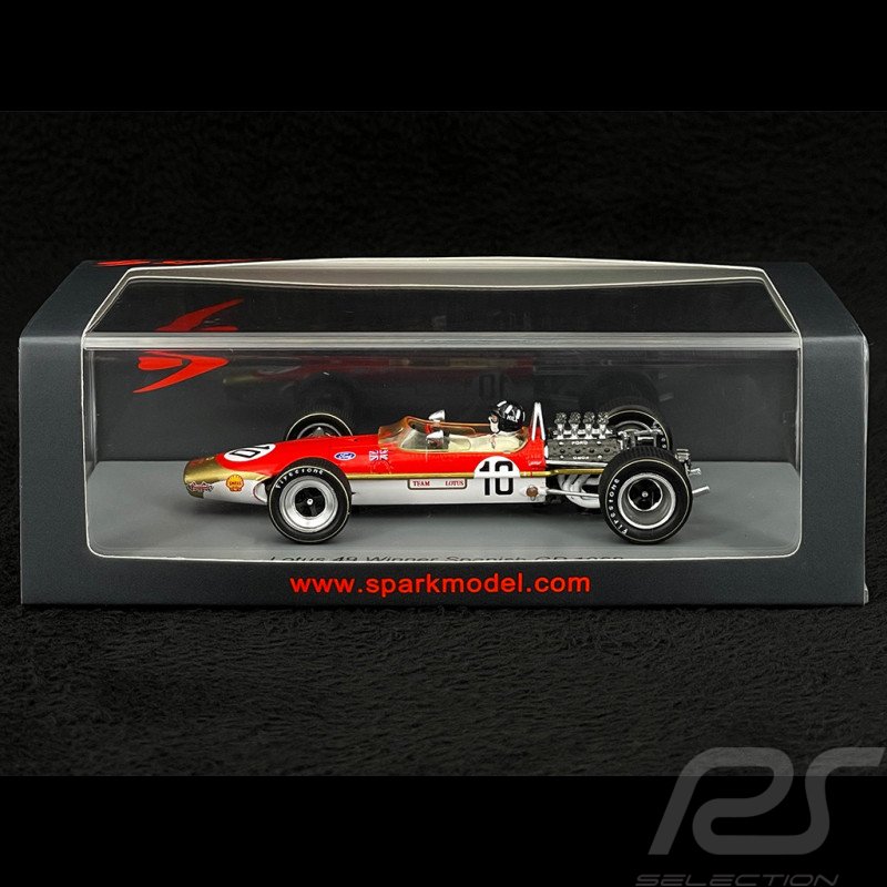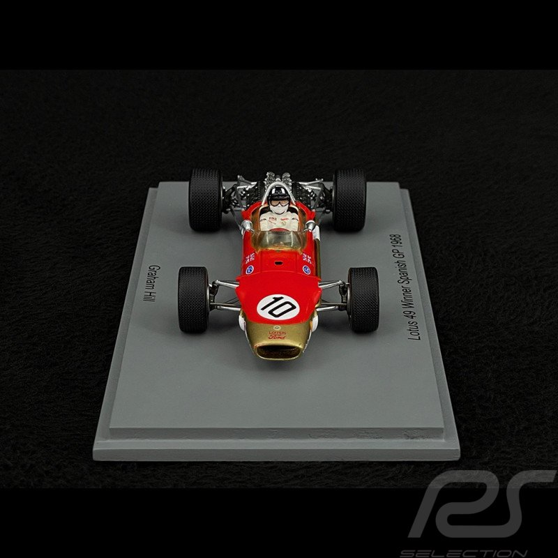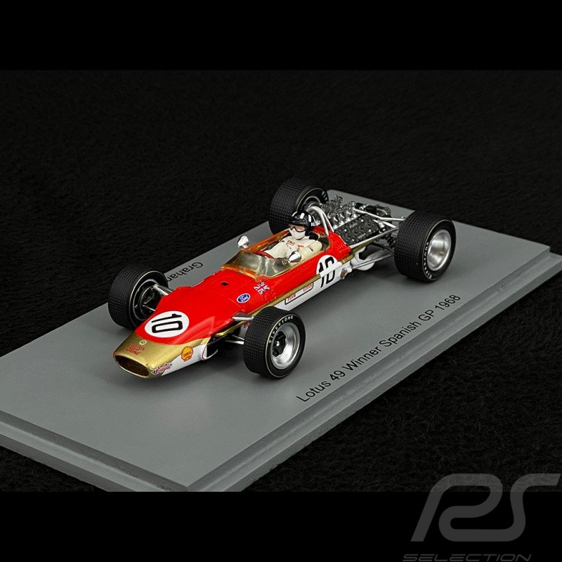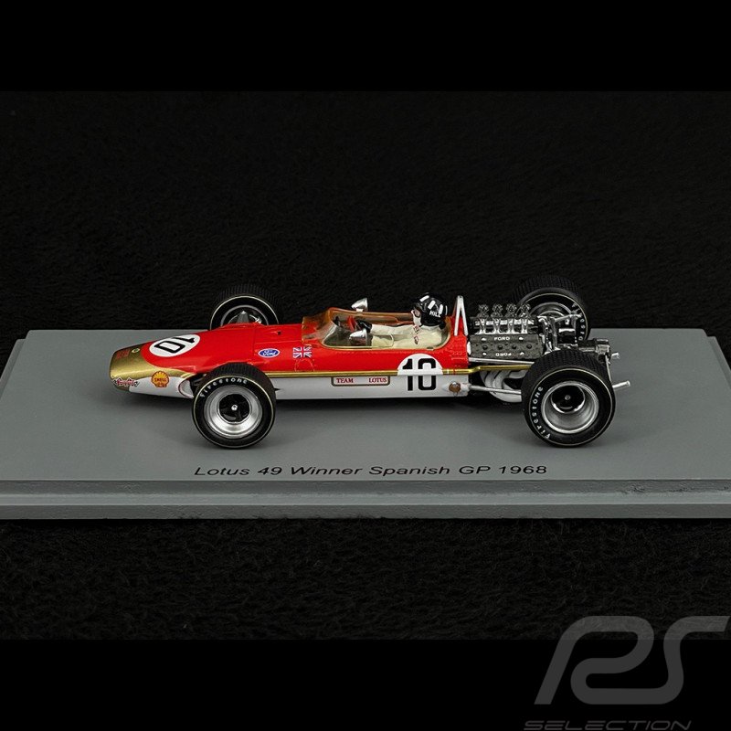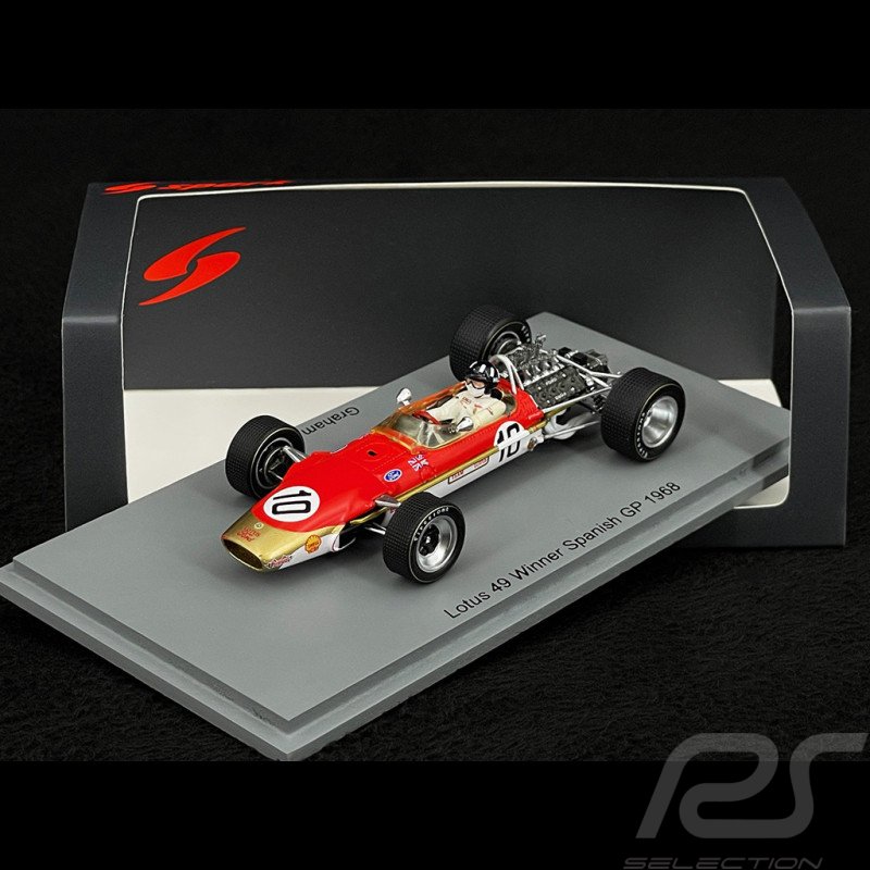 The model in question is a Spark 1:43 scale resin model of the Lotus 49 #10 driven by Graham Hill to victory in the 1968 Spanish Grand Prix. The model is identified by the product code S4829.