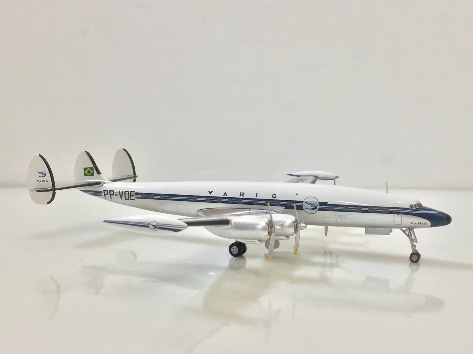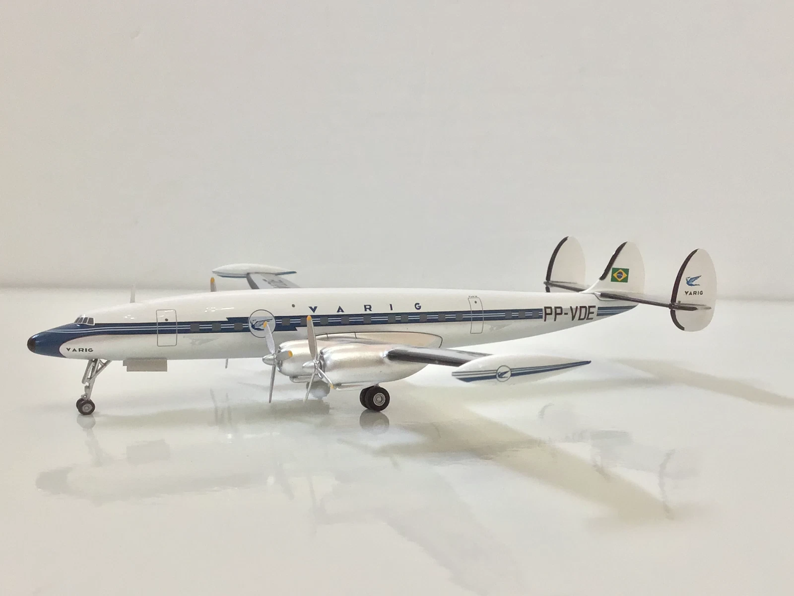 The AeroClassics 1:200 Varig Lockheed L-1049G Super Constellation (PP-VDE) is a highly detailed diecast metal collectible model produced under the “Western Models” range by AeroClassics.